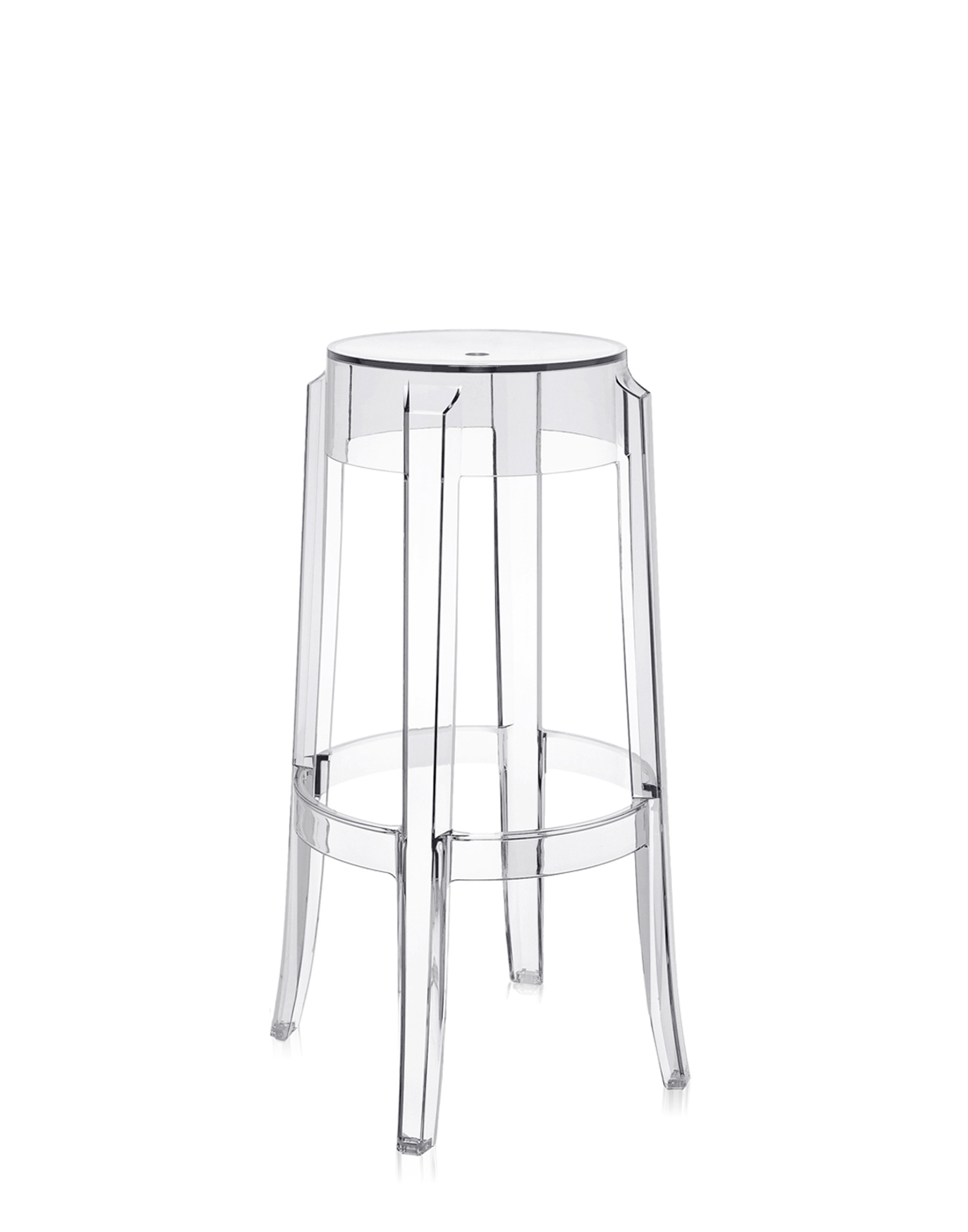 Το Charles Ghost είναι το σκαμπό που αντικατοπτρίζει το σχήμα των παραδοσιακών καθισμάτων του 19ου αιώνα. Η γραμμή του ποδιού είναι στρογγυλεμένη και ελαφρώς καμπυλωτή, ένα σύμβολο του κλασικού σκαμπό. Διατίθεται σε τρία διαφορετικά ύψη: από το σκαμπό για περιστασιακά, ανεπίσημα καθίσματα, μέχρι το σκαμπό για τον πάγκο της κουζίνας ή το μπαρ. Προσαρμόζεται τόσο σε εσωτερικούς όσο και σε εξωτερικούς χώρους.