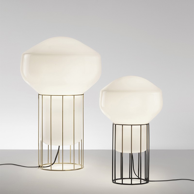 Φωτιστικό εσωτερικού χώρου επιτραπέζιο σε δύο διαστάσεις και δύο μεταλλικά χρώματα.