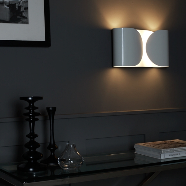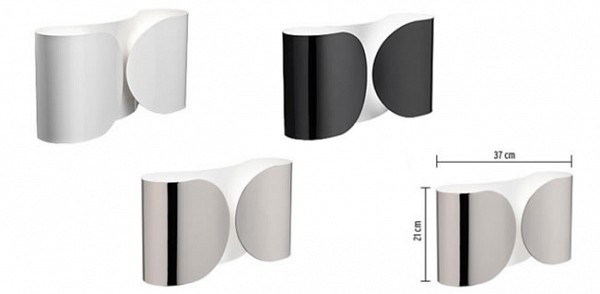 Φωτιστικό εσωτερικού χώρου απλίκα του οίκου flos σε τρία χρώματα λευκό μαύρο και χρώμιο.