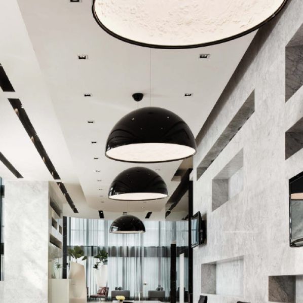 Φωτιστικό κρεμαστό σχεδιασμένο από MARCEL WANDERS το 2007 για τον οίκο FLOS.Κατασκευασμένο από stainless steel και γύψο.Ένα πραγματικά φωτιστικό κομψοτέχνημα που συνδιάζει το κλασικό με το μοντέρνο το μίνιμαλ με το μπαρόκ ,ένα φωτιστικό με ιδιαίτερη βάση στην λεπτομέρεια από όπου και να το παρατηρήσει κανείς.Κατάλληλο τόσο για μία μοντέρνα τραπεζαρία όσο και για ένα lobby ξενοδοχείου.