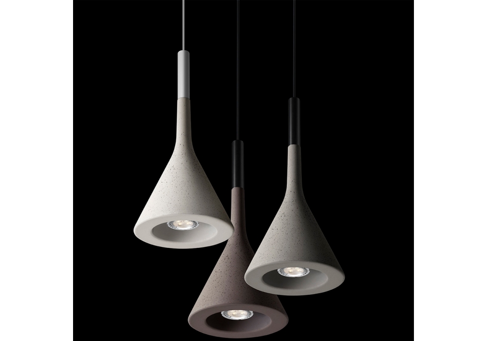 Φωτιστικό εσωτερικού χώρου του οίκου foscarini σχεδιασμένο από Lucidi e Pevere από τσιμέντο σε τρία χρώματα. Μία επιπλέον επιλογή στο τόσο πετυχημένο Aplomb αλλά τώρα σε μικρότερες με περισσότερες εφαρμογές .