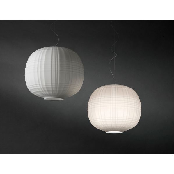 Φωτιστικό εσωτερικού χώρου κρεμαστό του οίκου FOSCARINI σχεδιασμένο από Ludovica e Roberto Palomba από φυσιτό γυαλί σε λευκό και γκρι χρώμα