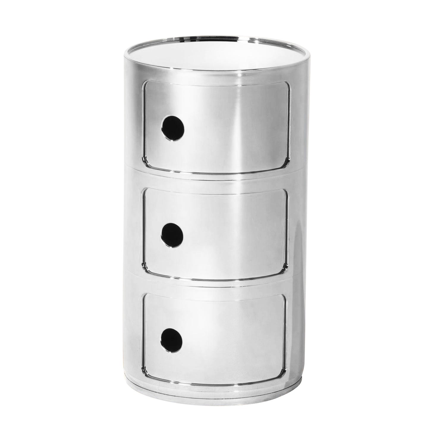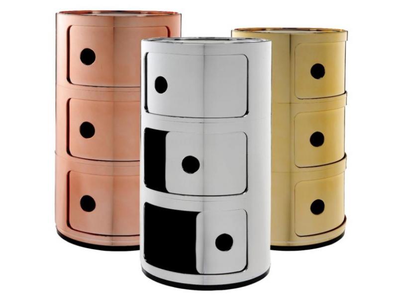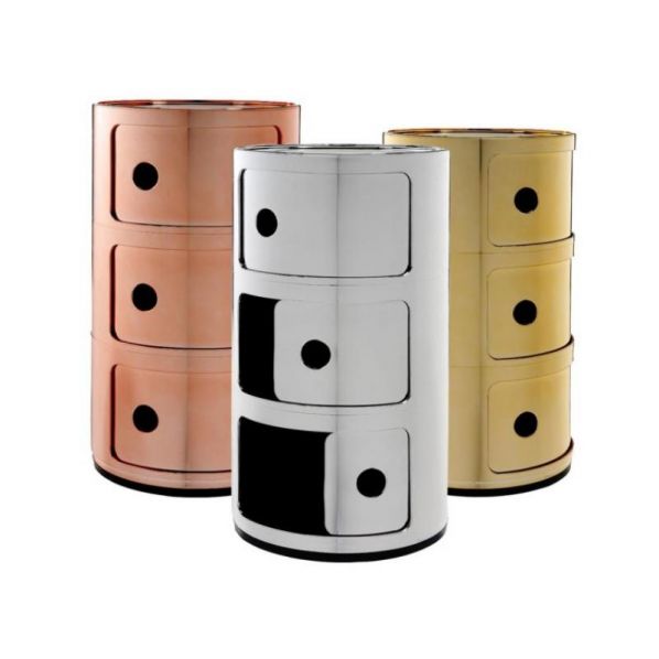 Συρταριερα κυλινδρική σε σχεδίαση Anna Castelli Ferrieri για τον οίκο Kartell που ανταποκρίνονται σε διαφορετικές ανάγκες χρήσης και για να ζουν σε κάθε χώρο του σπιτιού, στο μπάνιο, το υπνοδωμάτιο, την κουζίνα, το καθιστικό και το διάδρομο. Ένα έπιπλο απλό, πρακτικό με χώρους αποθήκευσης.