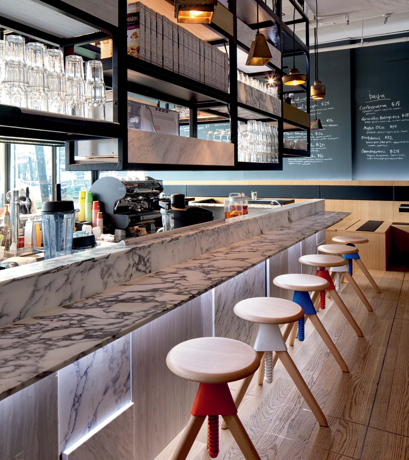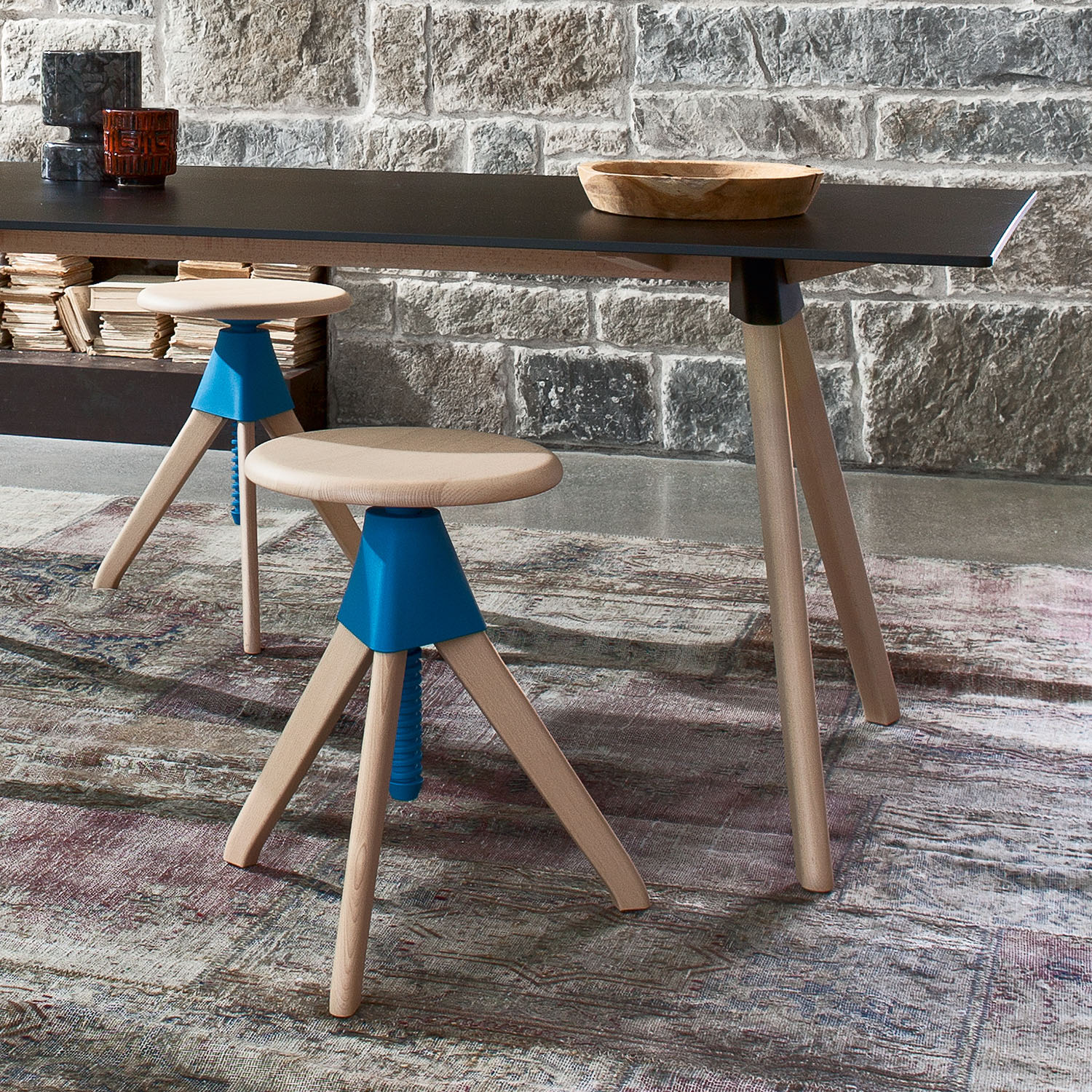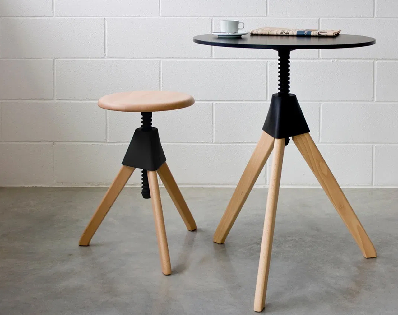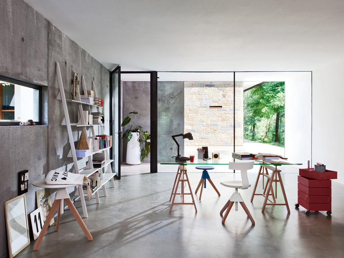 Σκαμπό του οίκου Magis σε σχεδίαση του Konstantin Grcic το 2012 με ρυθμιζόμενο ύψος κατάλληλο για εσωτερικό χώρο